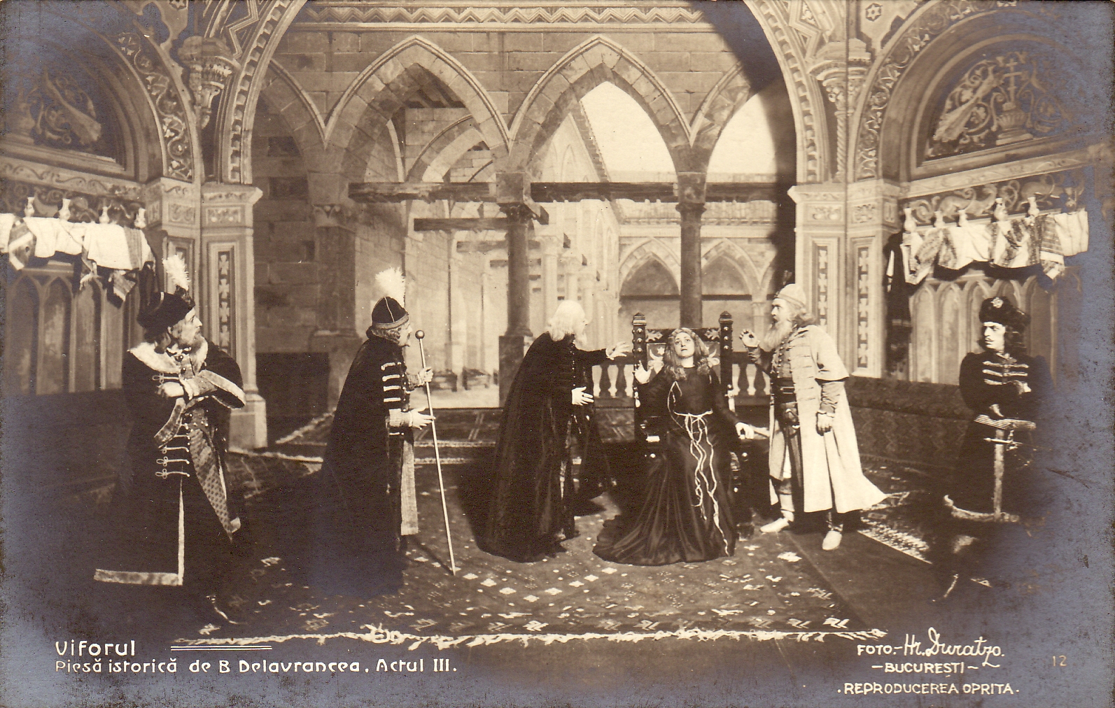 Scenă din actul III al piesei „Viforul” de Barbu Ştefănescu Delavrancea la Teatrul Naţional Bucureşti.Premiera a avut loc la  26 noiembrie 1909 cu Petre Liciu, C-tin Nottara, Ion Petrescu, Ion Brezeanu, Zaharia Bârsan, Tina Barbu, Olimpia Bârsan.